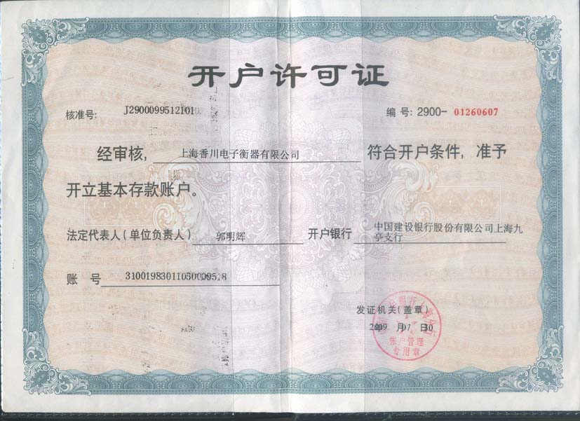 • 開戶銀行許可證